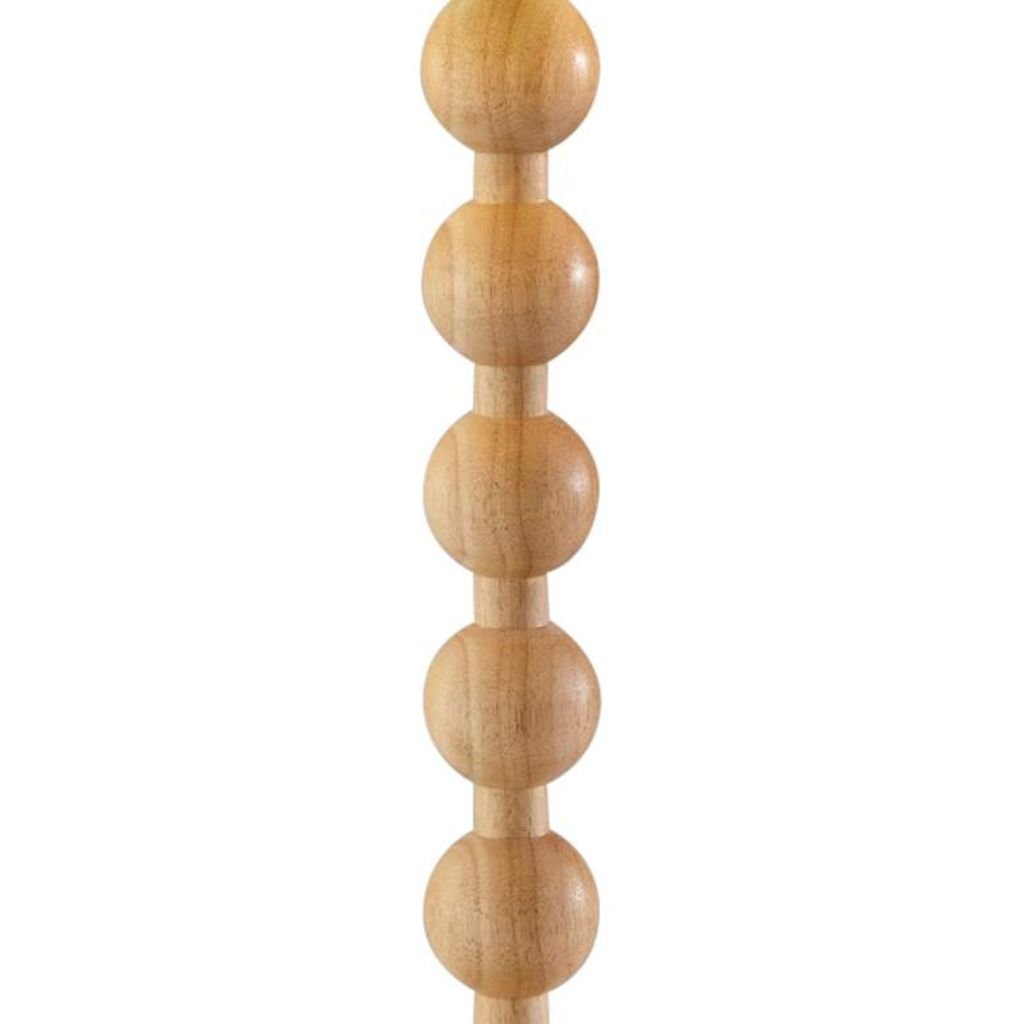The stacked ball stem is the design gesture that gives the Orchard lamp its particular personality — a series of turned wood spheres threaded onto a pole frame in a configuration that introduces rhythm, repetition, and tactile interest to what might otherwise be a straightforward wood column base. The natural finish over wood construction preserves the material’s honest character — grain patterns, subtle tonal shifts, and the warmth that only genuine wood delivers in a room environment. That authenticity is what separates the Orchard from resin or ceramic alternatives that approximate a wood aesthetic without committing to the material itself. The 7-inch round base provides a stable, grounded foundation for the stacked stem above, and the cream linen drum shade — 13.75 inches wide and 8.75 inches high — sits in clean proportion above the ball stem, its fabric surface introducing a second natural material to a composition already committed to organic warmth throughout.
