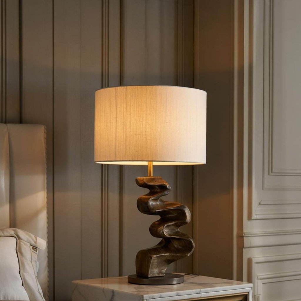 MODERN SCULPTURAL TABLE LAMP WALNUT