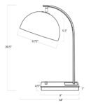 - Dimensions: 20 1/2″ high overall. Base is 4 1/2″ wide x 9″ deep. Shade is 5 1/2″ high x 9 3/4″ wide. Weighs 11 lbs.