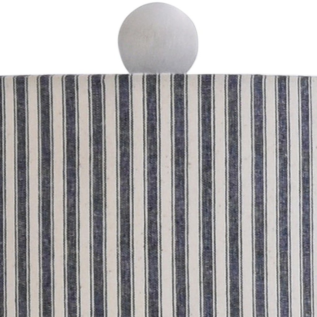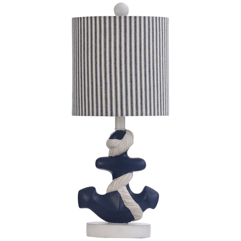 Built from resin, this navy blue and white coastal style table lamp is made to bring lasting character and warm light to a side table, console, or nightstand.