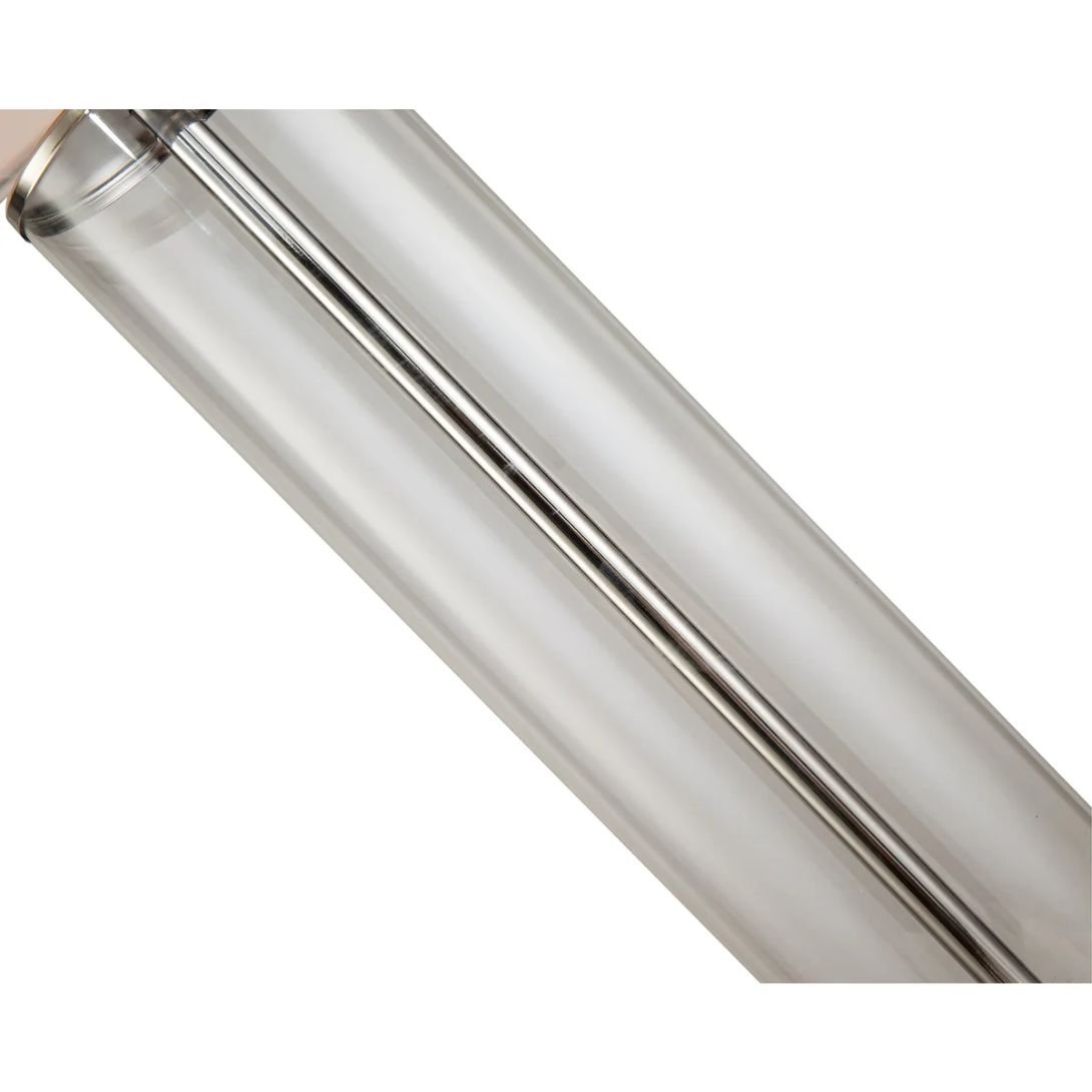 • ✦ Clear glass body with polished nickel detailing