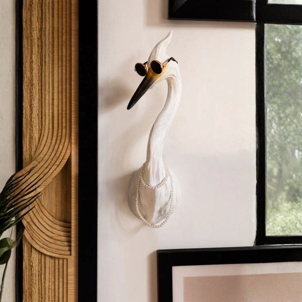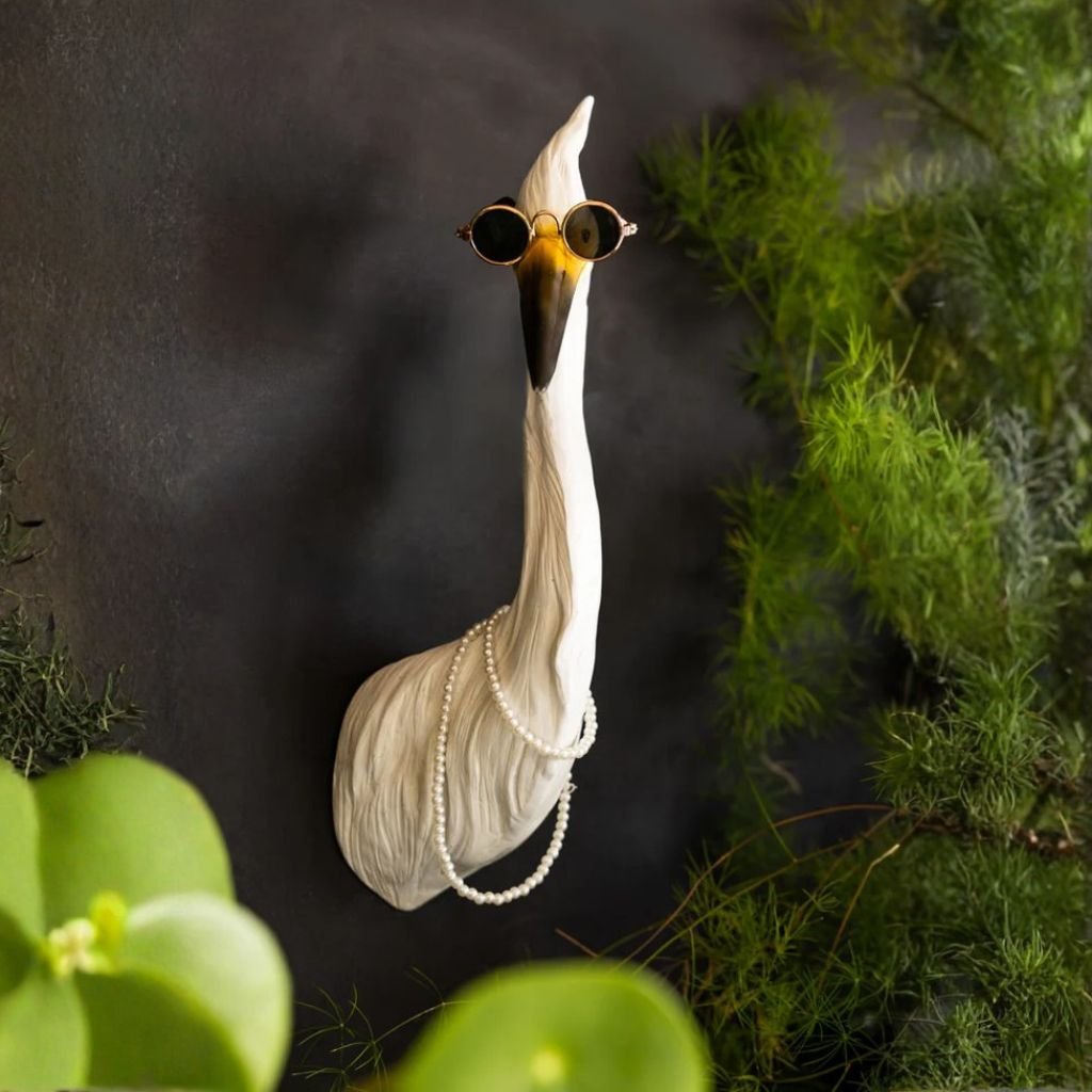This quirky wall art bird stands tall and proud in sunglasses and a pearl necklace, rendered in resin with a finish that feels genuinely luxurious for its compact scale. At 27.5cm, Ozzy is the perfect size to add a note of glamour and humour to a gallery wall, hallway, or kitchen wall without requiring significant space.