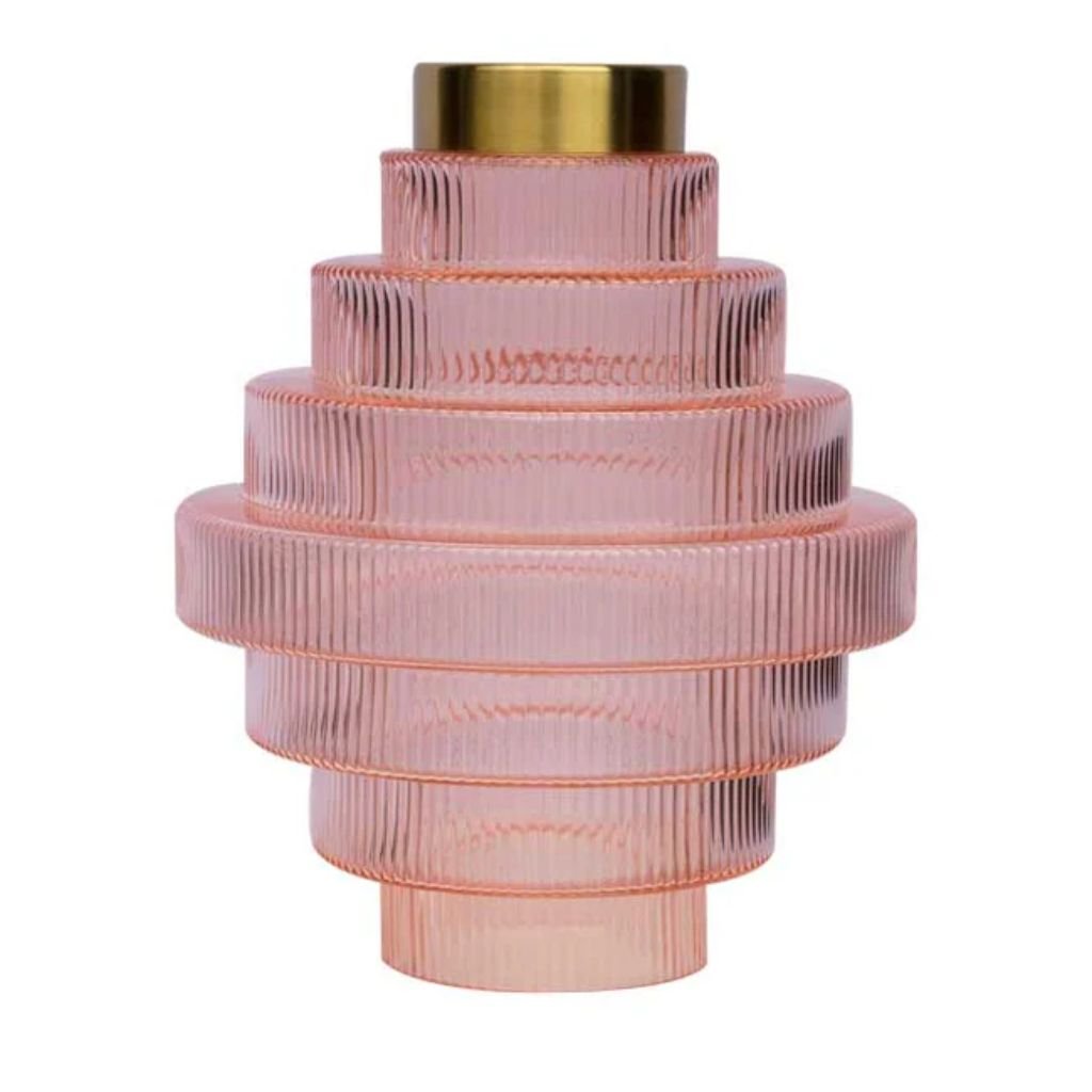 The fluted glass texture adds a decorative surface detail that catches and refracts light beautifully. The rose-tinted colour gives the resulting glow a warm, romantic quality.
