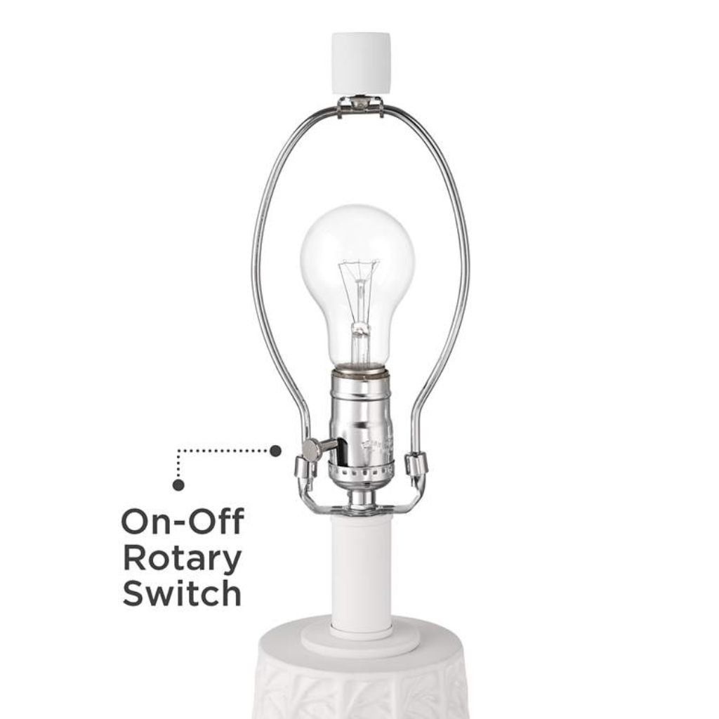This table lamp uses one maximum 150-watt standard-medium base Type-A bulb (not included) and features an easy-to-use on-off socket switch. An 8-foot-long clear cord provides flexibility in placement, whether styled on an end table, console, or nightstand.