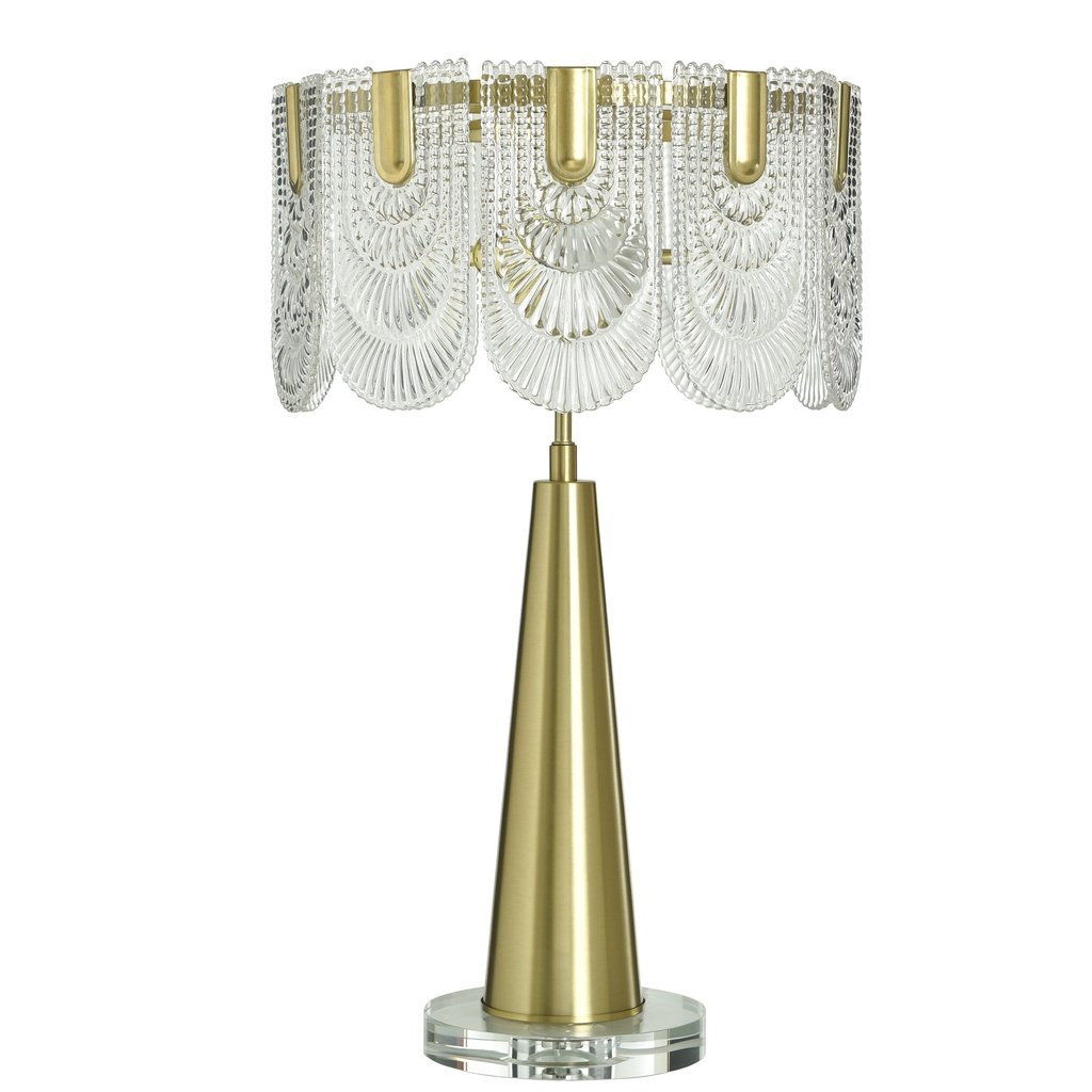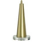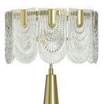 Steel construction finished in polished brass gives the base both durability and a lustrous, upscale appearance. The brass tone pairs naturally with crystal and glass accents, adding depth and a touch of vintage-inspired glamour to the overall form.