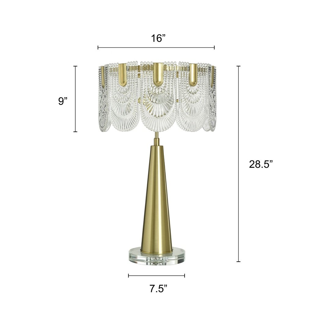 This polished brass lamp combines crystal, metal, and glass into a single cohesive design that leans classic glam without feeling overdone. The polished brass finish brings warmth and light-reflective quality to the base, while the layered material mix keeps the overall look interesting at any angle. At 28 inches tall and 20 pounds, it has genuine substance and presence on a console, dresser, or side table.