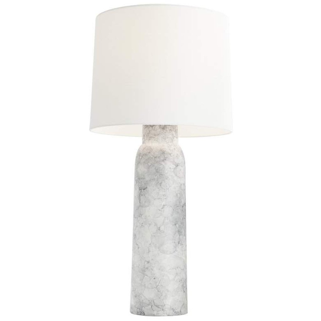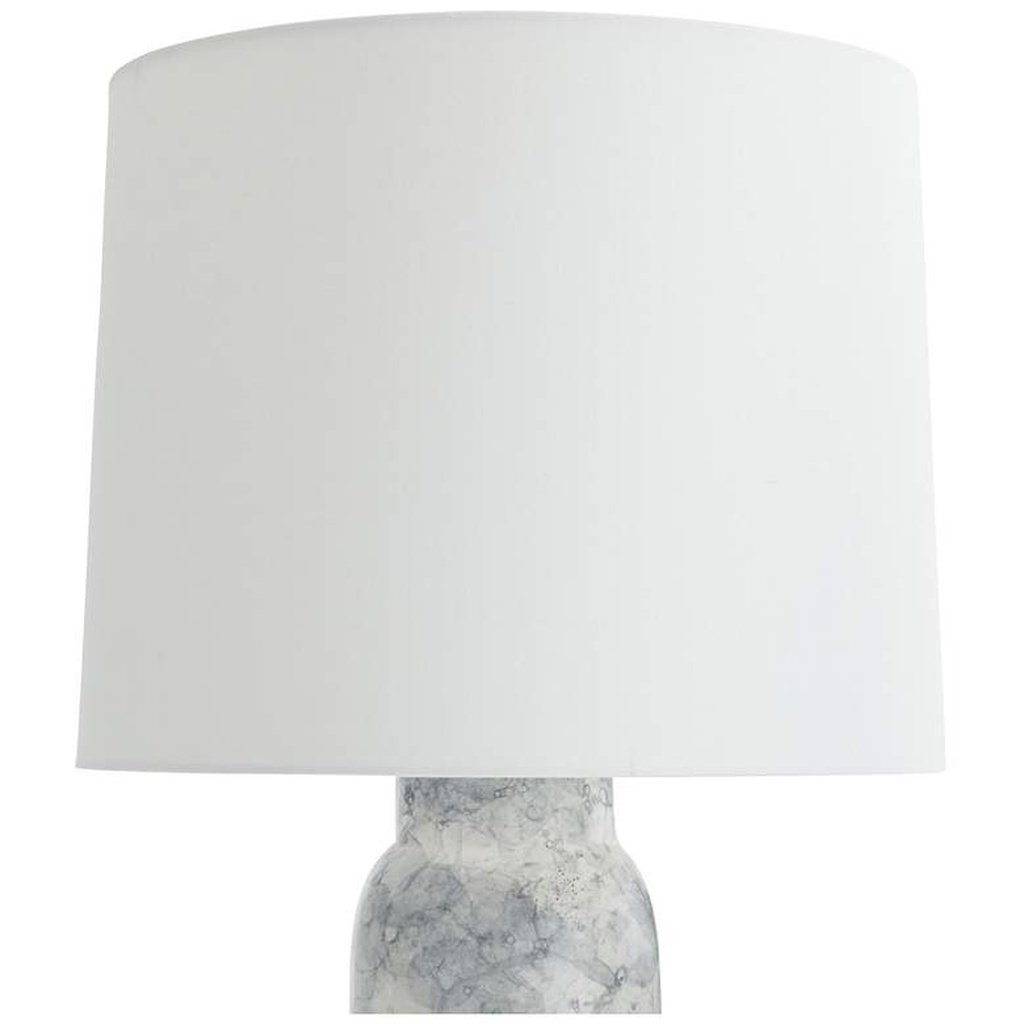Soft ivory. Structured form. A finish that shifts between storm grey and pale blue depending on where the light falls. The Arteriors Heather porcelain table lamp in Thundercloud is one of those rare objects that rewards a second look — and a third. The thundercloud glaze is not a flat color but a living surface, the kind that porcelain uniquely enables through its firing process, where depth and variation are built into the material rather than applied on top of it. Arteriors Home has long understood that a lamp is never just a light source, and the Heather makes that case with complete conviction.