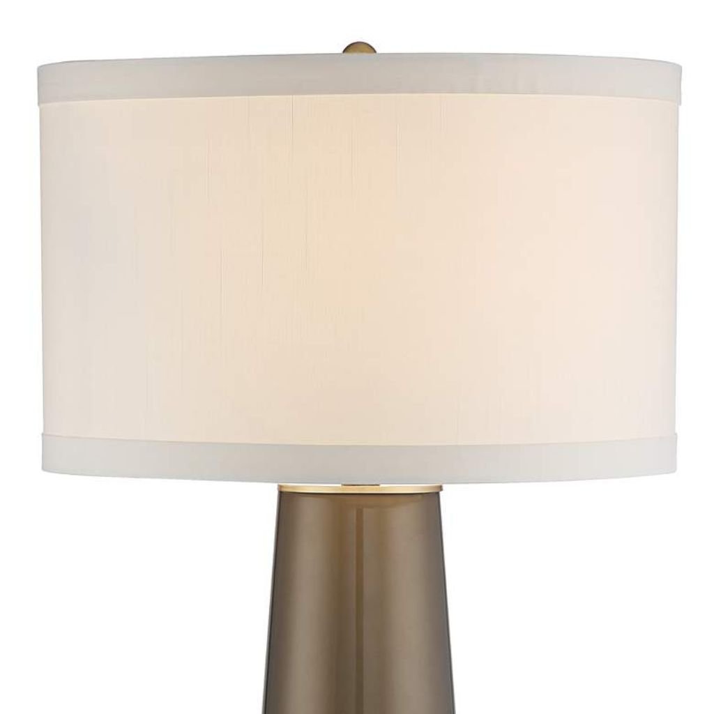 Bring refined elegance and visual height to your interior with this modern glass table lamp from Possini Euro Design. Designed to enhance spacious living rooms and stylish bedrooms, these tall table lamps showcase sleek proportions and luminous finishes. Their dark gold glass bodies and softly tailored shades create a sophisticated focal point with timeless appeal.