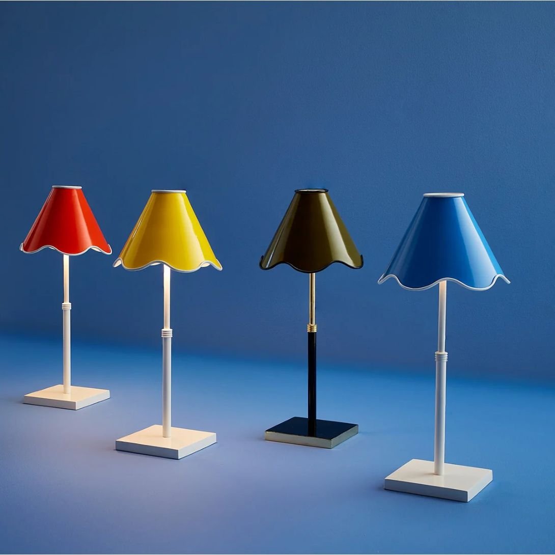 Add a splash of personality and portability with the Ripple Rechargeable LED Table Lamp—a bold, modern accent that brings charm and convenience wherever you place it. Choose from playful hues like poppy orange, yellow, or blue, or keep it subtle with neutral olive—each shade styled with distinctive rippled trim that echoes its coordinating base.