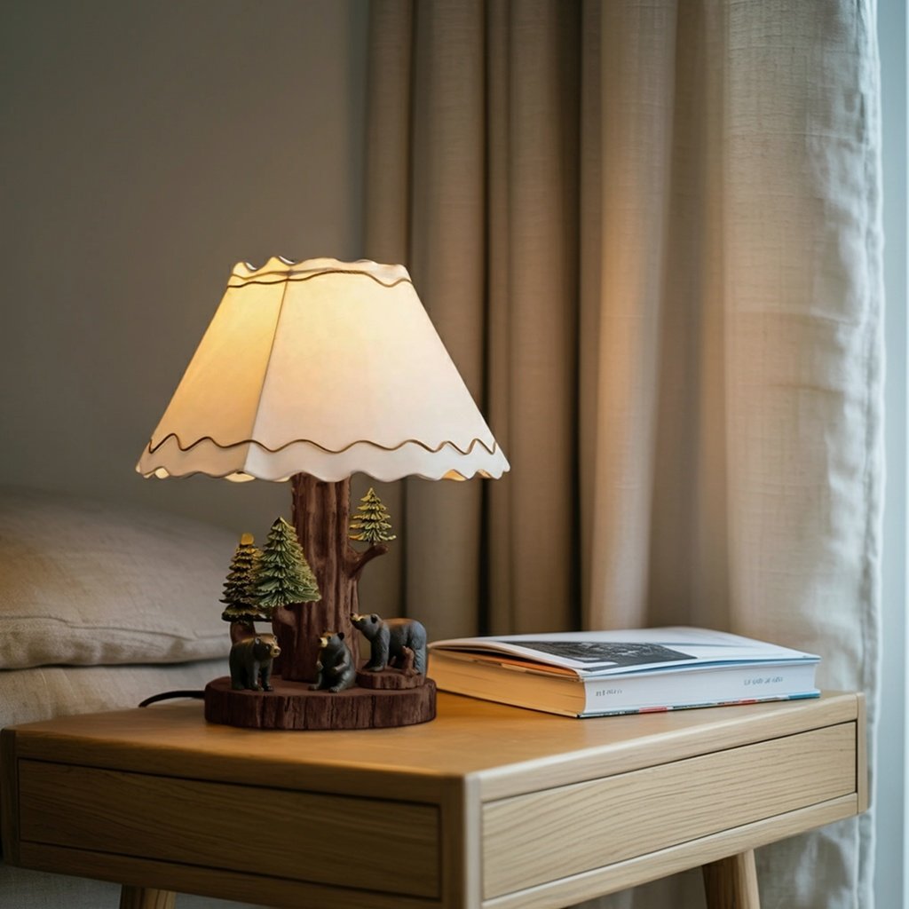 The lamp‘s design is inspired by the enchanting forest, featuring miniature pine trees and playful bears that bring a touch of whimsy to any room. Its hand-shaped details create a unique visual experience, while the softly contoured lampshade casts a gentle, inviting glow. This nature-inspired piece adds both interest and serenity to your decor.