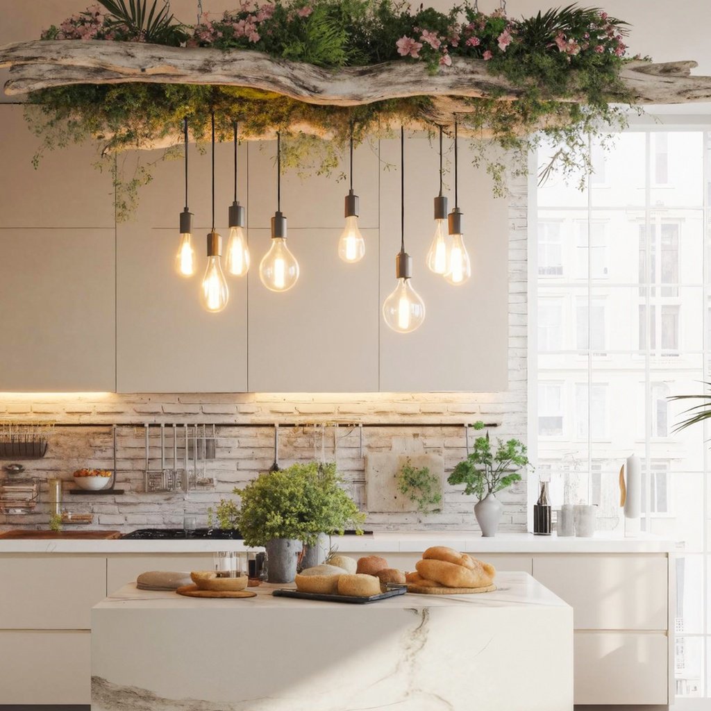 Crafted from a natural driftwood beam, this ceiling light embraces the beauty of raw textures and organic forms. The Edison-style hanging bulbs provide a vintage-inspired glow, making it both a functional and decorative piece. Whether in a dining room, kitchen, or open living space, its rustic charm creates a welcoming environment.