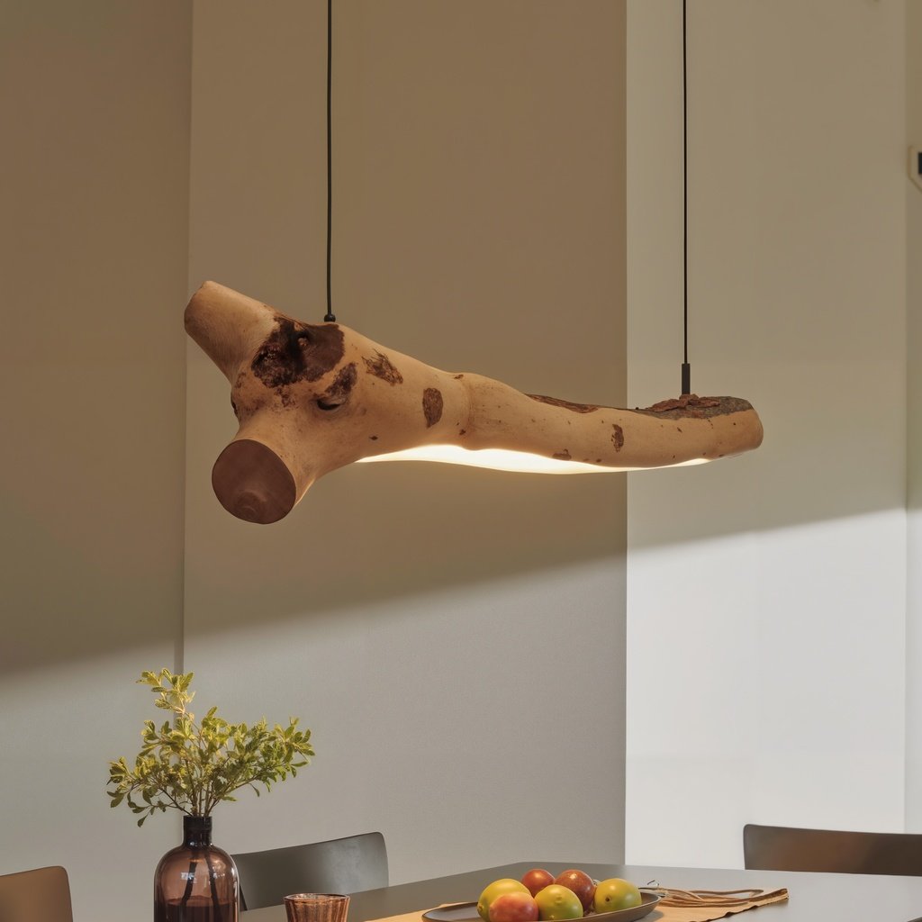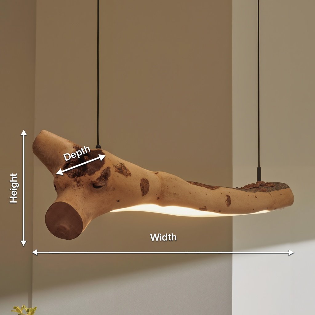 Imagine a natural branch floating effortlessly above your table. That’s the magic of this chandelier. It’s designed with a branch silhouette that’s both rustic and modern. The integrated LED lights run along the branch, providing a soft and even glow. The raw details and subtle knots give it a handcrafted touch, while still keeping it sleek and stylish.
