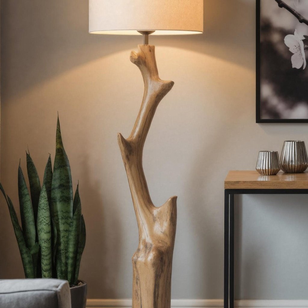 This floor lamp mimics the natural elegance of a tree branch with its wooden base. The design captures the raw, untamed essence of the forest, while the simple fabric lampshade adds a touch of modern style. Its sculptural lines make it an eye-catching piece, perfect for bedrooms, living rooms, or a cozy reading nook. It’s not just a lamp; it’s a work of art.