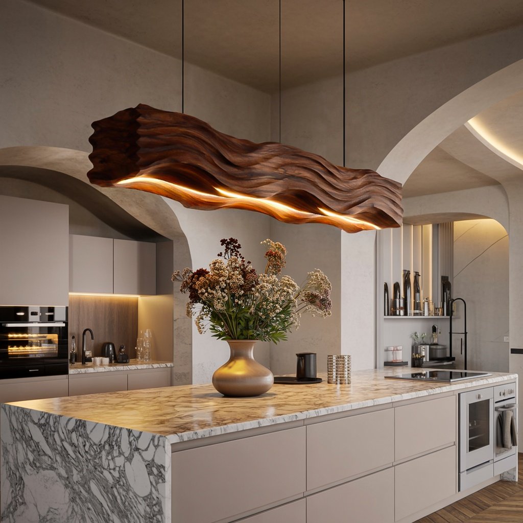 MODERN PENDANT LIGHTING WITH CARVED WAVE WALNUT