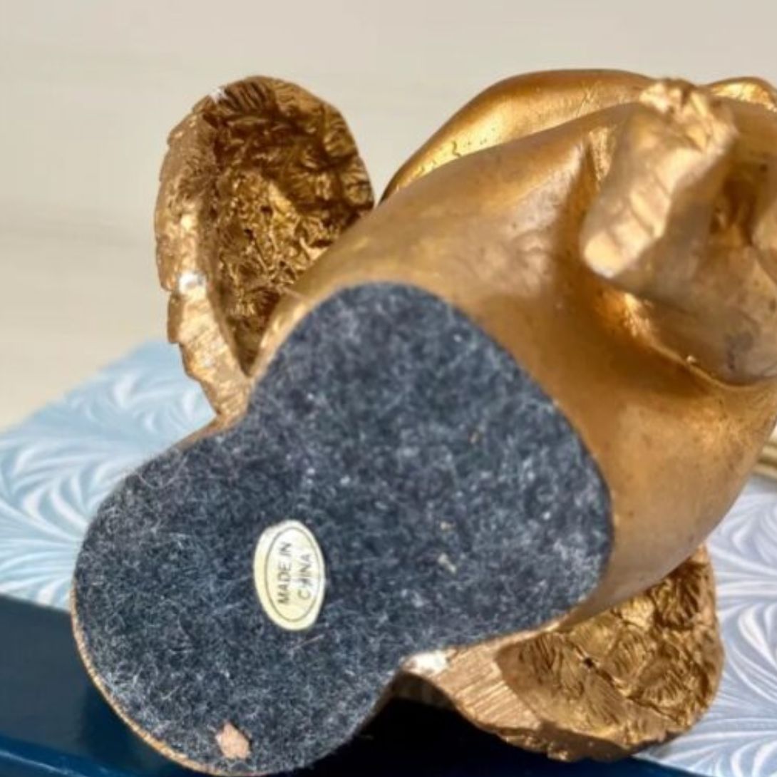 The gilded finish adds a warm, antique glow, making this piece both a charming accent and a functional light source. While compact in size, its character and detail make it a delightful addition to any vintage or classical decor setting.