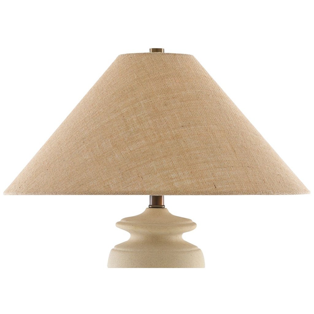 The tapered empire shade directs light downward in a focused, flattering way. It’s a classic profile that works with a wide range of base styles. The fabric choice complements the overall finish and color palette of the lamp.