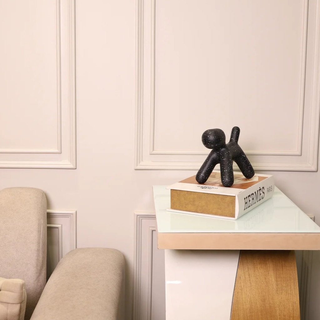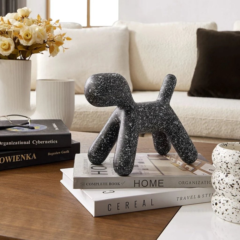 Thanks to its neutral color palette, this dog figurine blends well with various materials like wood, stone, and metal. It’s an ideal choice for bookshelves, consoles, or as a centerpiece on your coffee table. Its abstract form ensures it will catch the eye, while its subtle design complements your existing decor.
