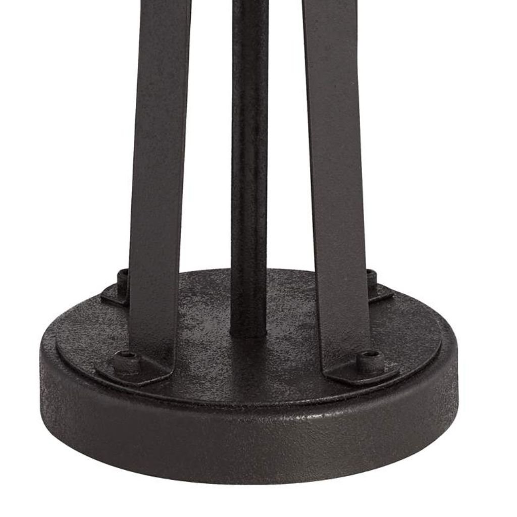 • Dark bronze finish over metal slat construction with open geometric base design