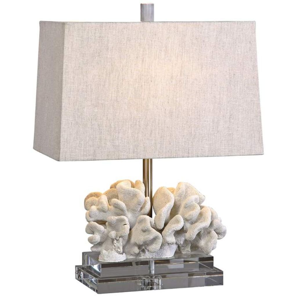 Bring subtle coastal elegance to your home with the Taupe Ivory Coral Table Lamp from Uttermost. This beautifully textured table lamp combines natural coral-inspired detailing with a crystal base, creating a sophisticated focal point for living rooms, bedrooms, or entryways. Its neutral palette and tactile finishes make it versatile for a variety of décor styles.