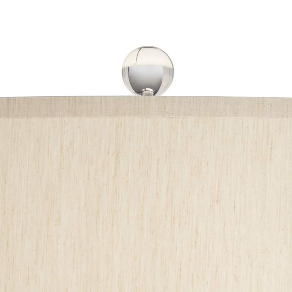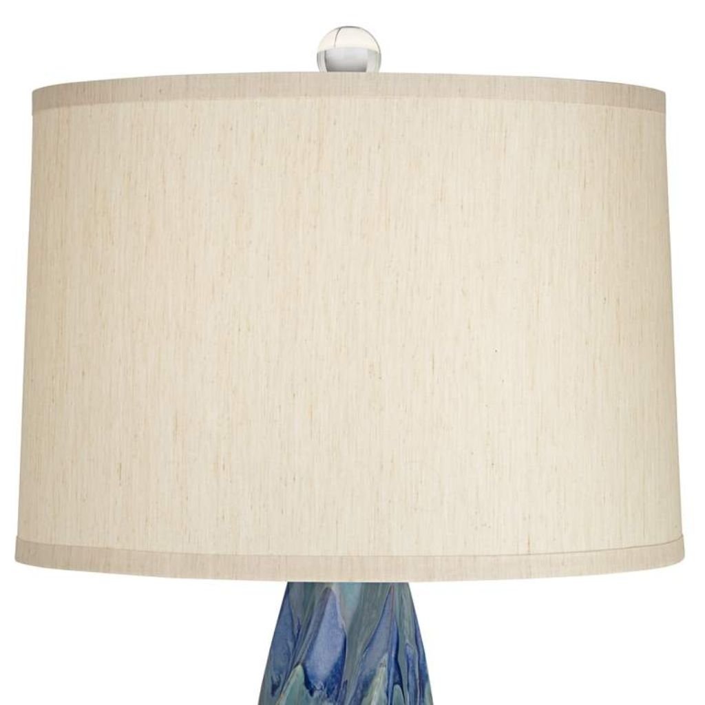 The hand-applied teal blue finish and clear acrylic accents create a refreshing, contemporary look that complements both modern and transitional décor. Top it with the included beige drum shade for warm, inviting illumination. This lamp is a functional and stylish addition that elevates your space effortlessly. Learn more about unique lighting designs in the Possini Euro Design collection and bring a touch of handcrafted elegance to your home.