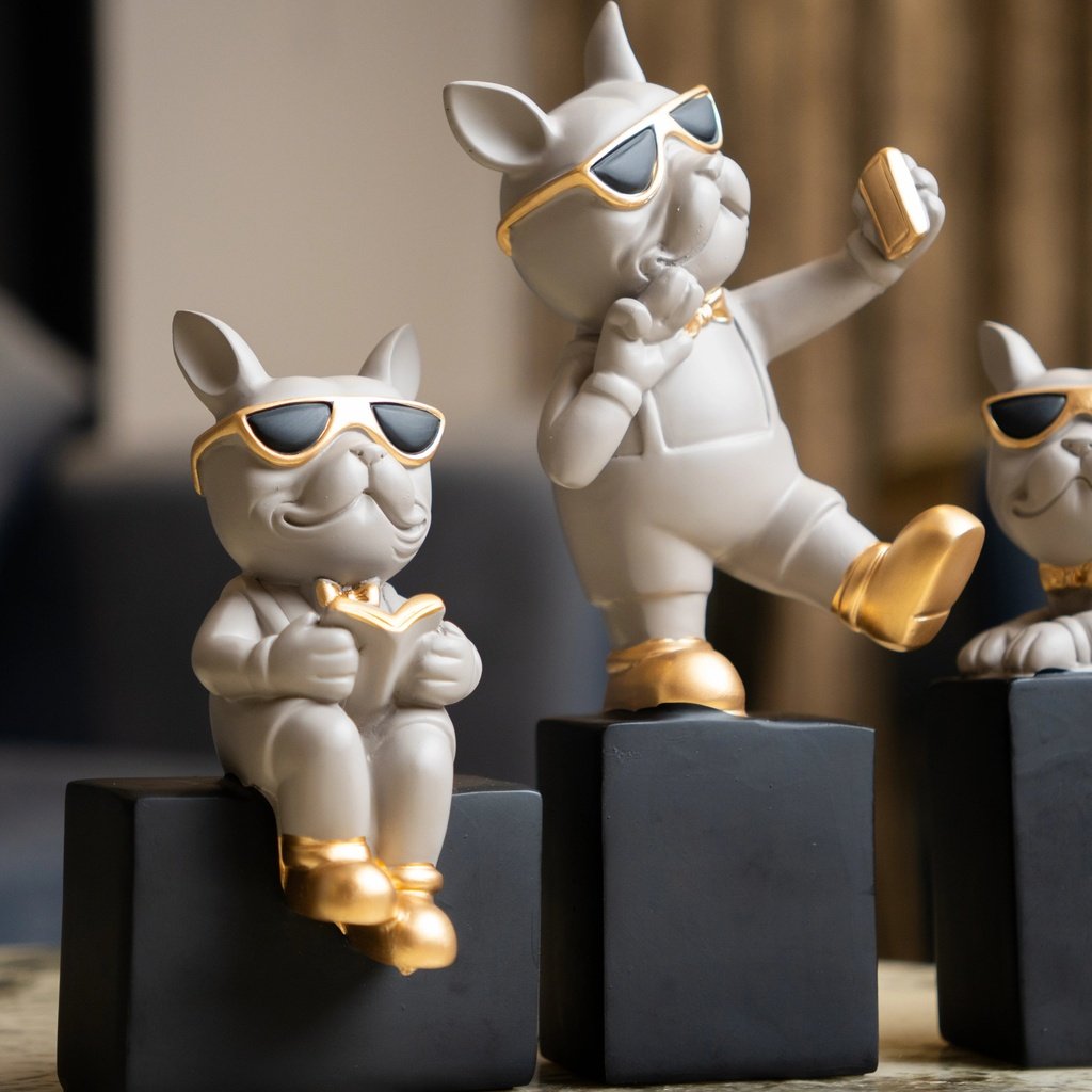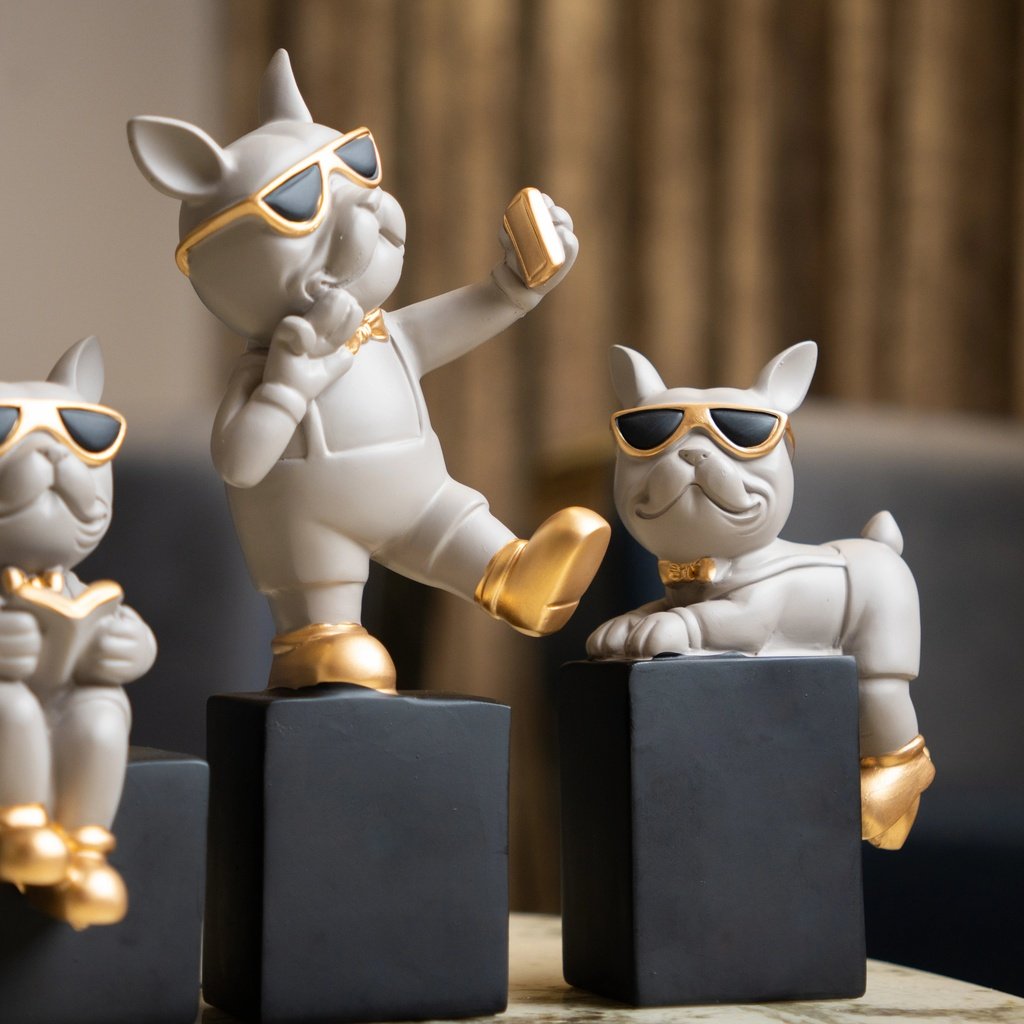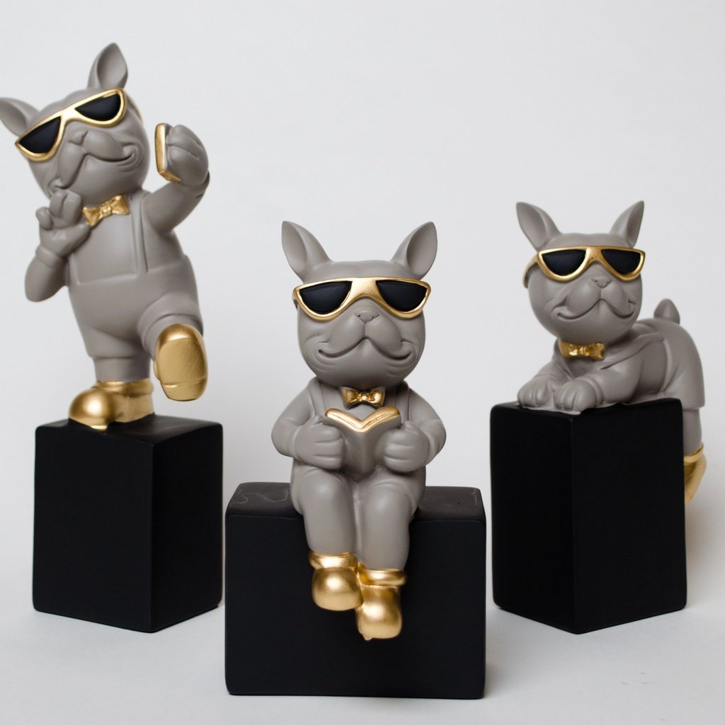Crafted from high-quality resin, these figurines boast smooth contours and clean detailing. The sleek soft grey finish is perfectly complemented by metallic gold accents on sunglasses, bow ties, and shoes. This combination not only adds a touch of luxury but also ensures the set fits seamlessly into a variety of decor styles.