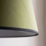 The rich emerald green fabric shade adds a jewel-toned depth to any interior. It works beautifully with earthy tones, warm woods, and brass accents.