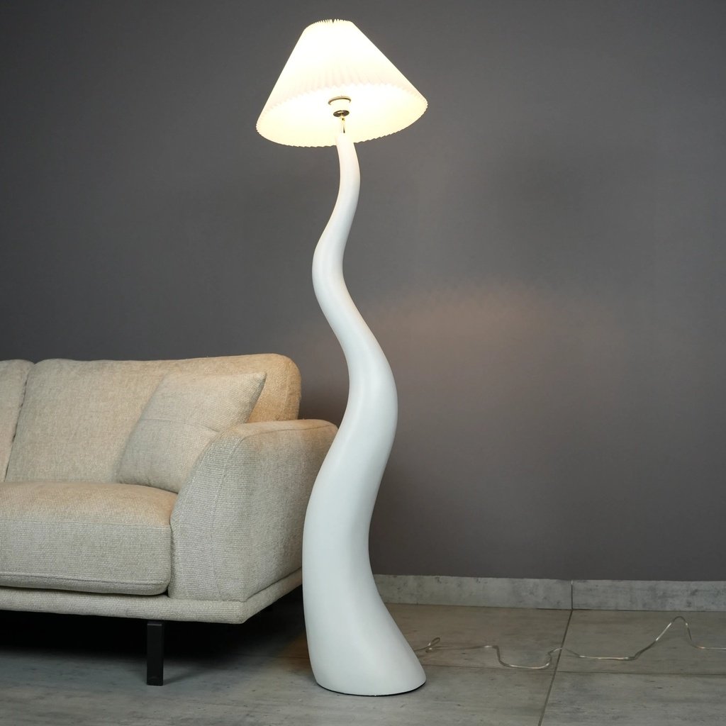 The Wavy Glow Floor Lamp features a beautifully curved body that looks like a gentle wave, adding a sense of movement to your room. Its matte white finish gives it a clean, sophisticated look that fits effortlessly into a range of interior styles, from minimal to modern luxe. It’s a piece that stands out without being overwhelming.