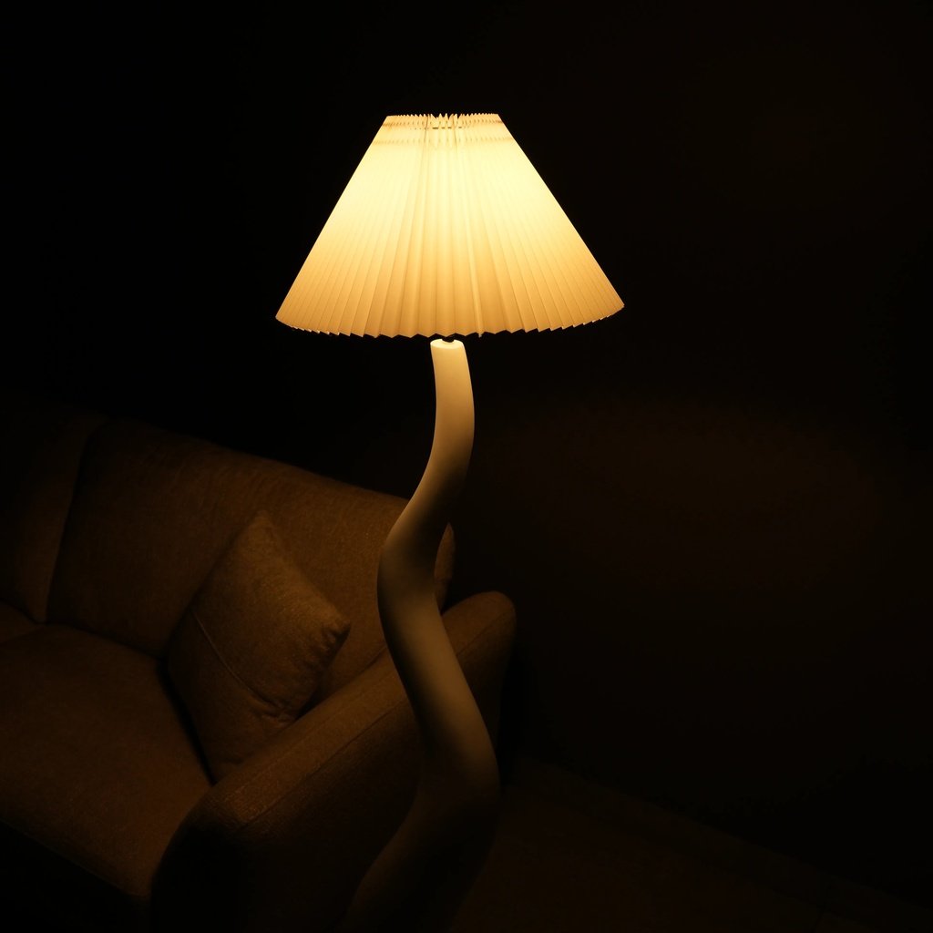 Atop this flowing design is a soft fabric lampshade that casts a warm, welcoming glow. Whether you’re curling up with a good book or just winding down after a busy day, this lamp creates a cozy atmosphere. It’s perfect for enhancing the mood in your living room, bedroom, or any place that needs a touch of warmth.