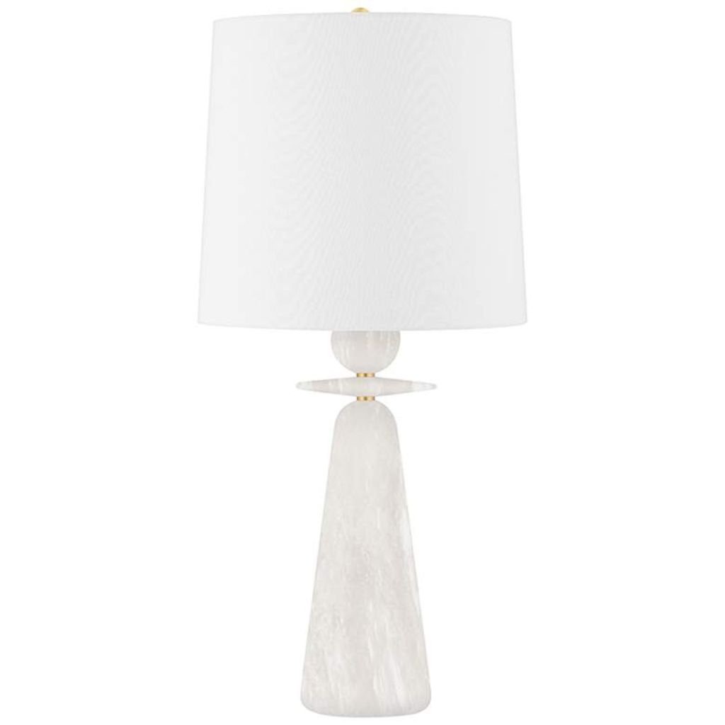 With its alabaster base, aged brass accents, and Belgian linen drum shade, the Montgomery table lamp from Hudson Valley delivers elegance, functionality, and a modern design statement for any well-curated interior.