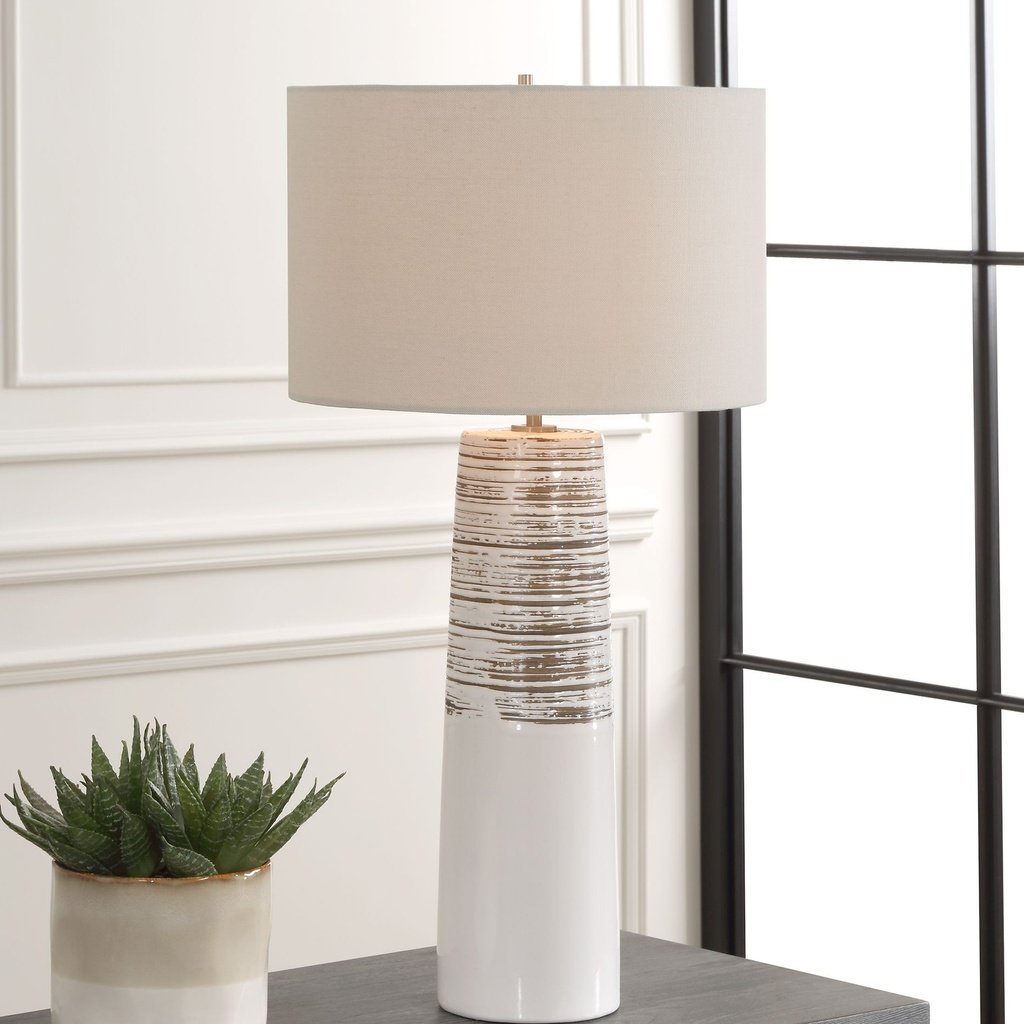 Built from ceramic, this table lamp is made to hold its visual interest over time. The white glaze ceramic table lamp features a carefully considered finish that reads as polished without being fussy. It works in both casual and formal settings with equal ease.