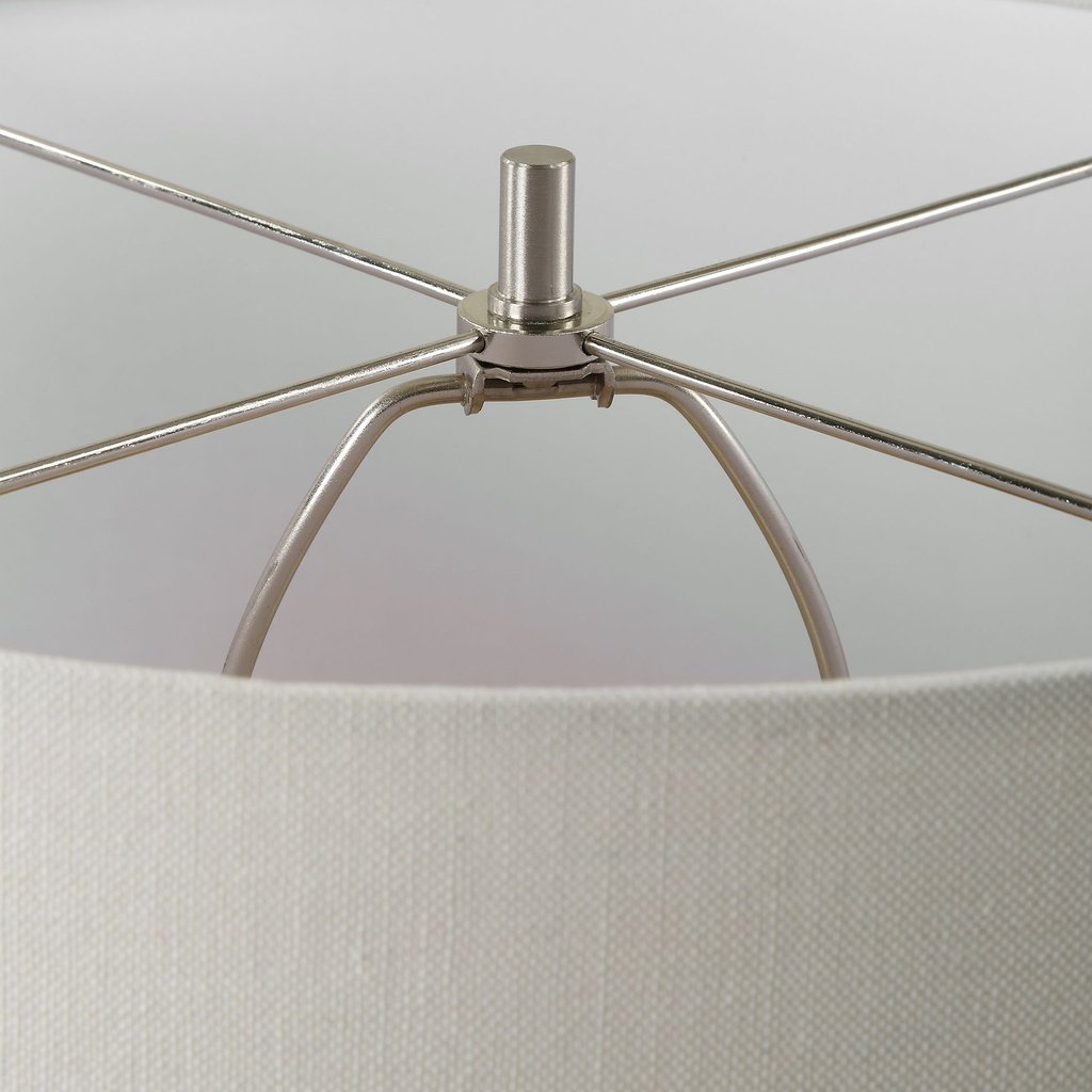 The drum shade distributes light evenly across the room, creating a warm, ambient glow. Its straight sides and clean profile suit both modern and transitional spaces. The fabric softens the light source without significantly dimming output.