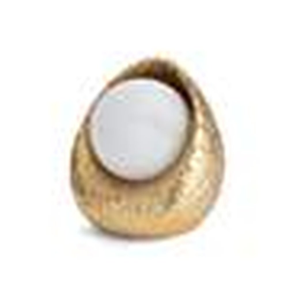 Regina Andrew Designs built the Nest Mini around a single compelling image — a pearl resting in a nest. The gold-finished resin base achieves its hammered texture through careful molding, producing a surface that catches light with the same irregularity as hand-worked metal. Against that detailed base, the smooth alabaster globe creates a deliberate contrast: rough versus refined, matte versus luminous. The white-gold color palette keeps the lamp versatile across interior styles — it works in a maximalist vanity arrangement just as naturally as it does on a spare, minimal nightstand. Every element at this scale is considered, and nothing is wasted.