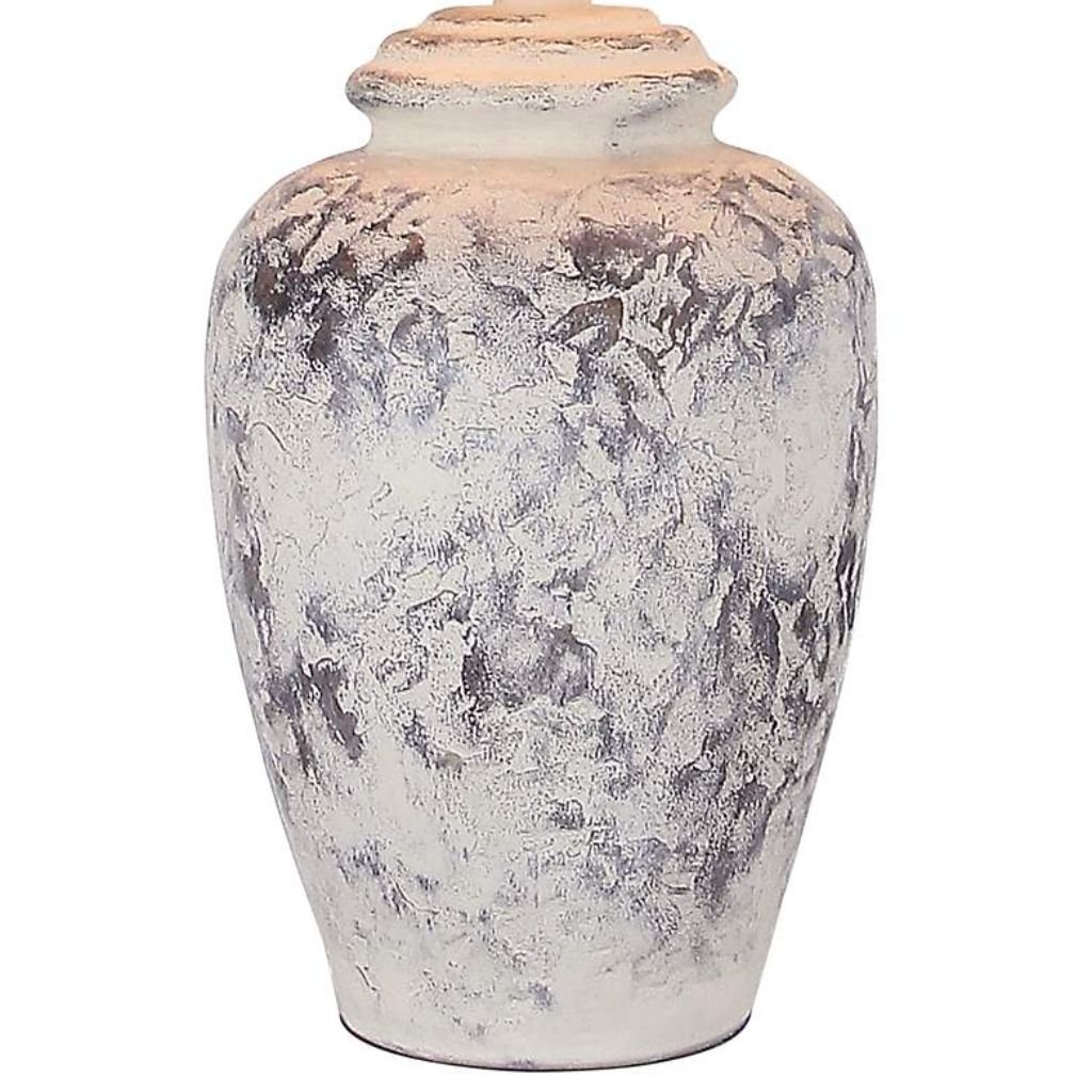 Textured plaster details give the lamp a handcrafted, artisanal feel